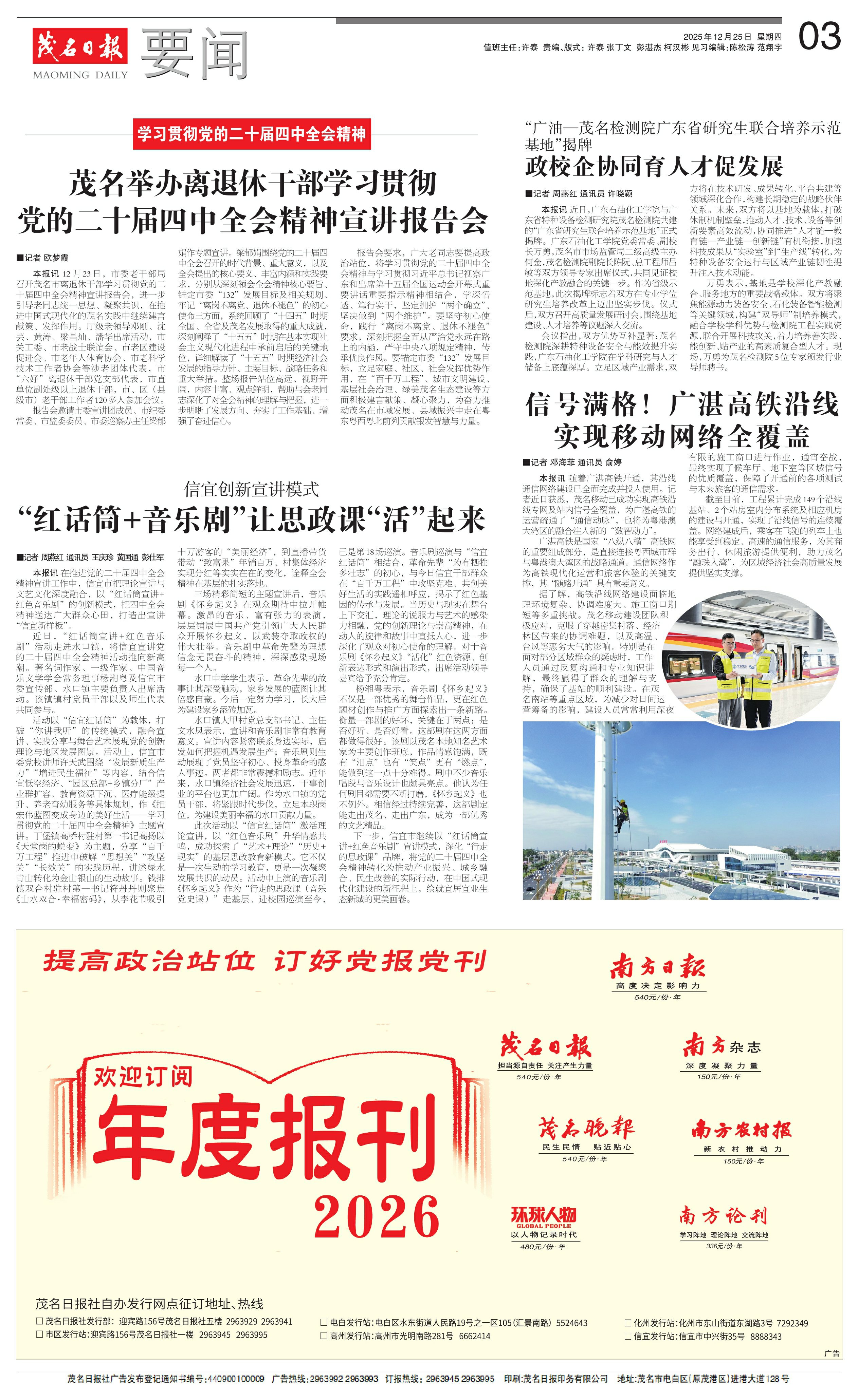 茂名举办离退休干部学习贯彻党的二十届四中全会精神宣讲报告会