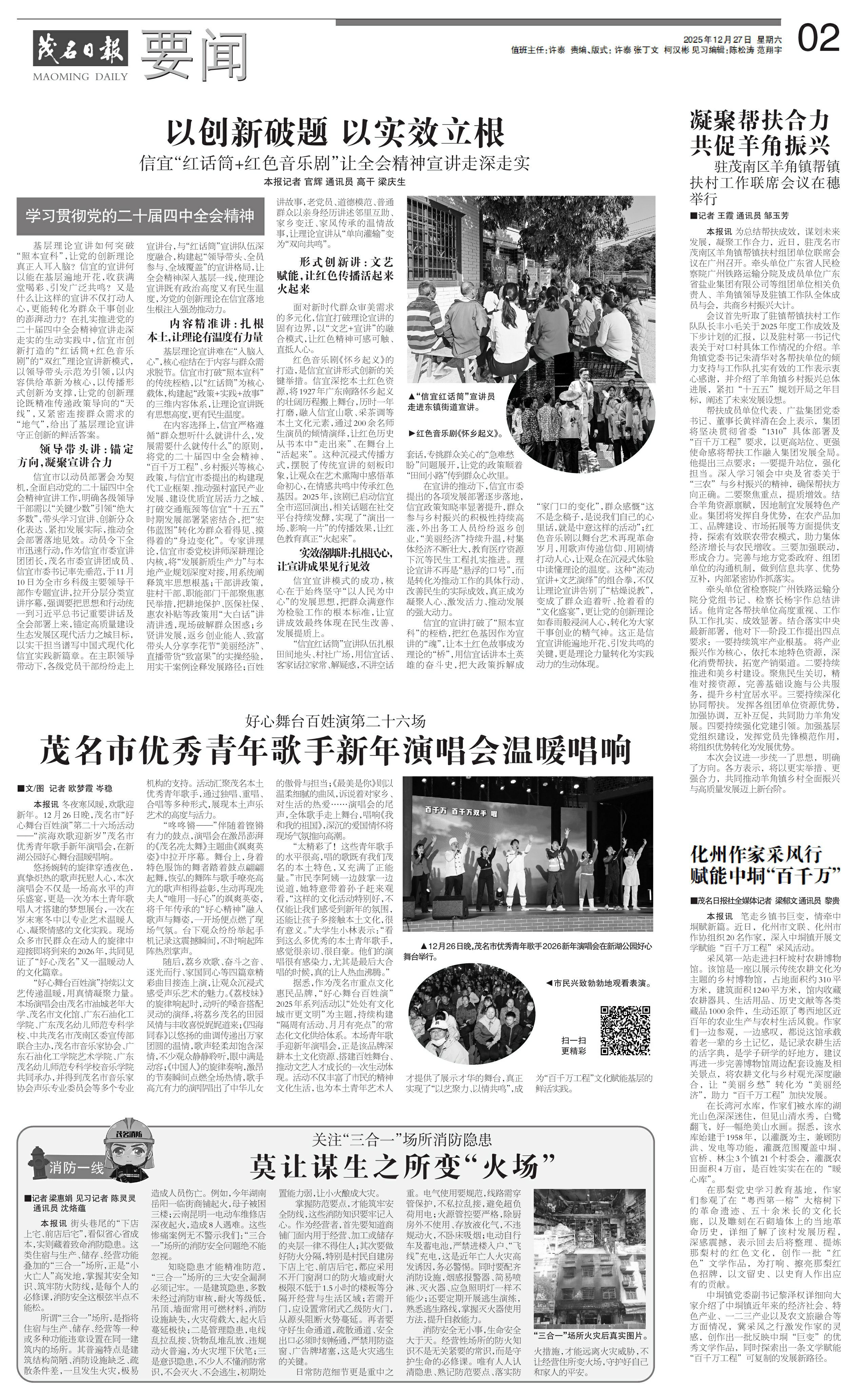 悠扬婉转的旋律穿透夜色,真挚炽热的歌声抚慰人心,本次演唱会不仅是一场高水平的声乐盛宴,更是一次为本土青年歌唱人才搭建的梦想展台,一次在岁末寒冬中以专业艺术温暖人心、凝聚情感的文化实践。现场众多市民群众在动人的旋律中迎接即将到来的2026年,共同见证了“好心茂名”又一温暖动人的文化篇章。