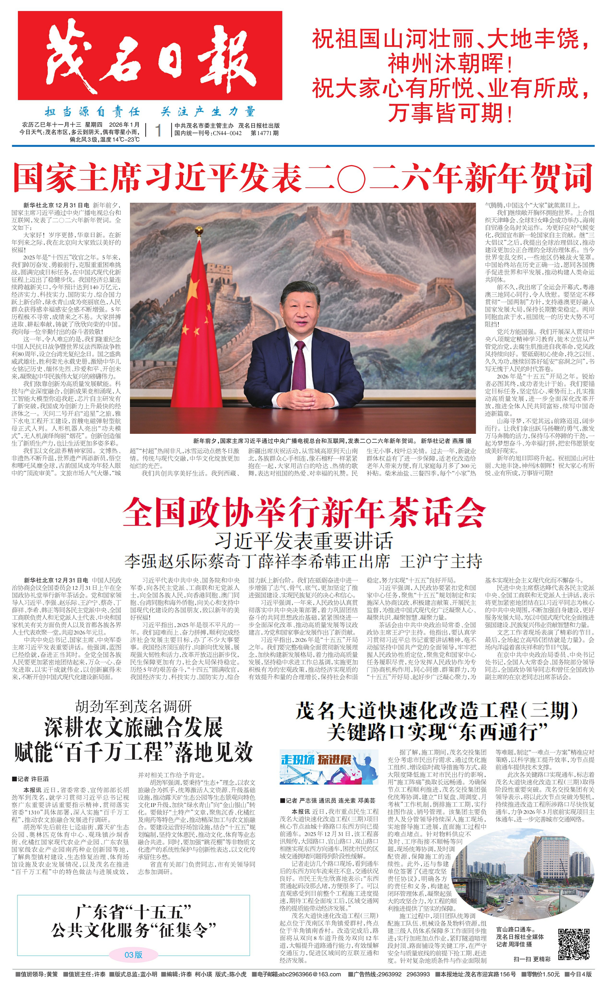 国家主席习近平发表二〇二六年新年贺词