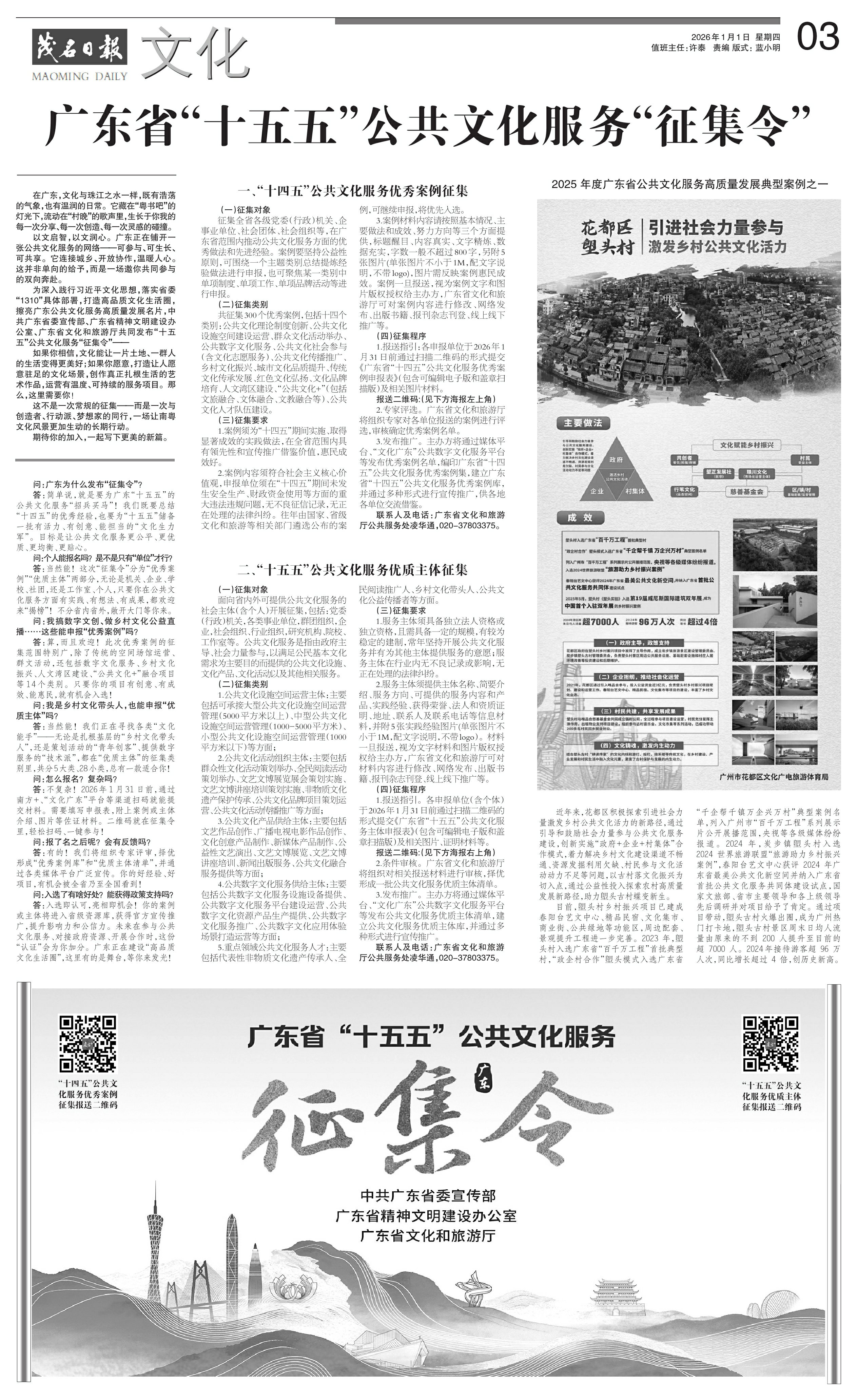 广东省“十五五”公共文化服务“征集令”