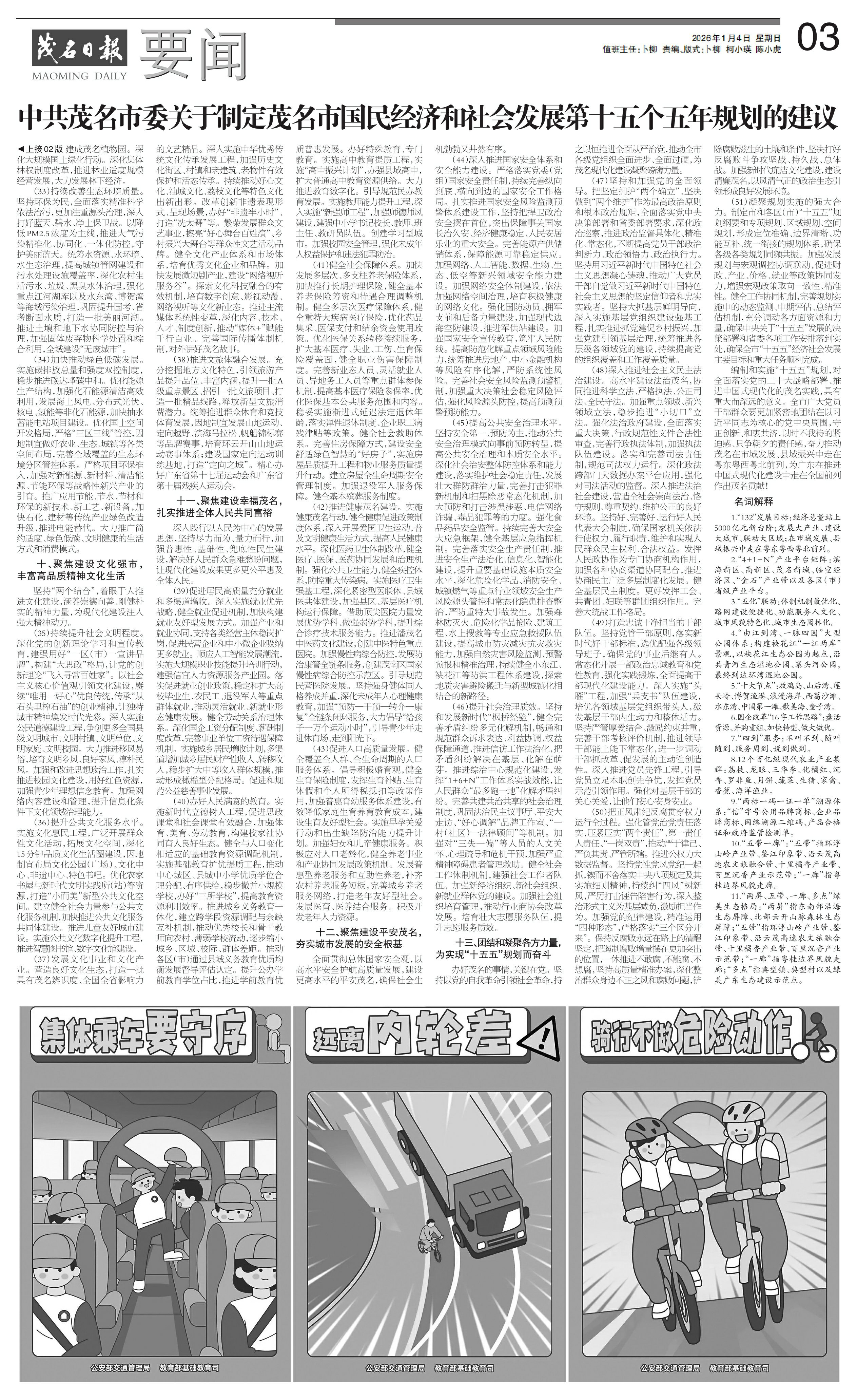 中共茂名市委关于制定茂名市国民经济和社会发展第十五个五年规划的建议