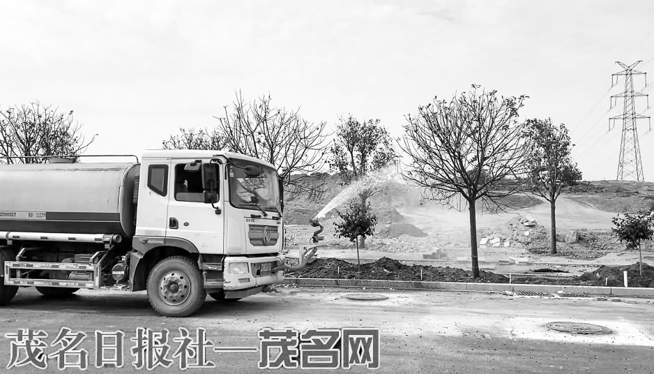 本报讯 茂名新城好心大道项目建设进展迅速。近日,记者实地探访看到,建设现场呈现一派繁忙有序的景象,道路中央分隔带及沿线两侧已全面启动绿化种植工作,各类苗木在专业施工人员的精心栽植下渐次“安家”。与此同时,多台工程机械正协同进行土壤摊铺、地形整理与浇灌作业,工人忙碌铺设人行道砖石。