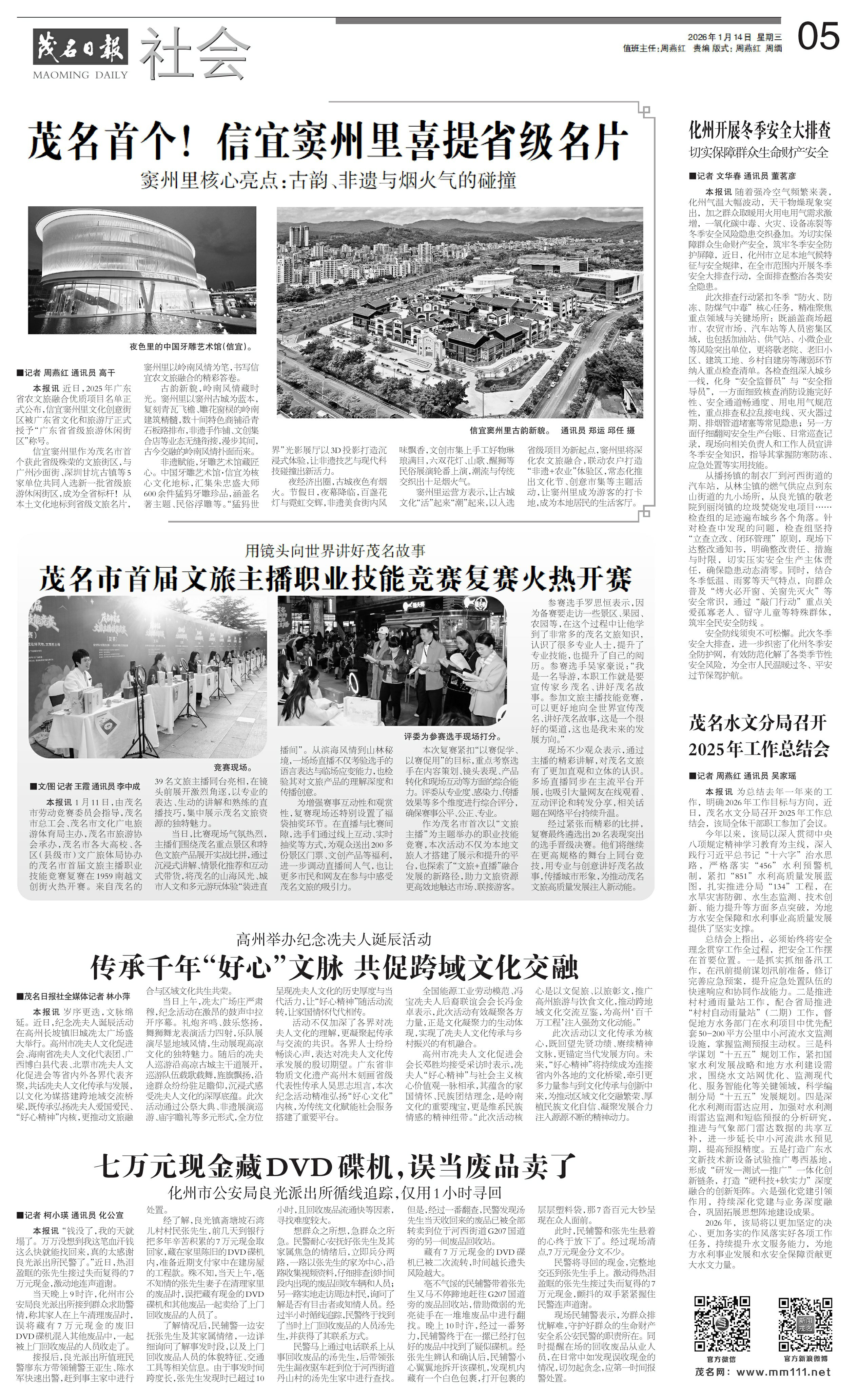 本报讯 1月11日,由茂名市劳动竞赛委员会指导,茂名市总工会、茂名市文化广电旅游体育局主办,茂名市旅游协会承办,茂名市各大高校、各区(县级市)文广旅体局协办的茂名市首届文旅主播职业技能竞赛复赛在1959南越文创街火热开赛。来自茂名的39名文旅主播同台亮相,在镜头前展开激烈角逐,以专业的表达、生动的讲解和熟练的直播技巧,集中展示茂名文旅资源的独特魅力。