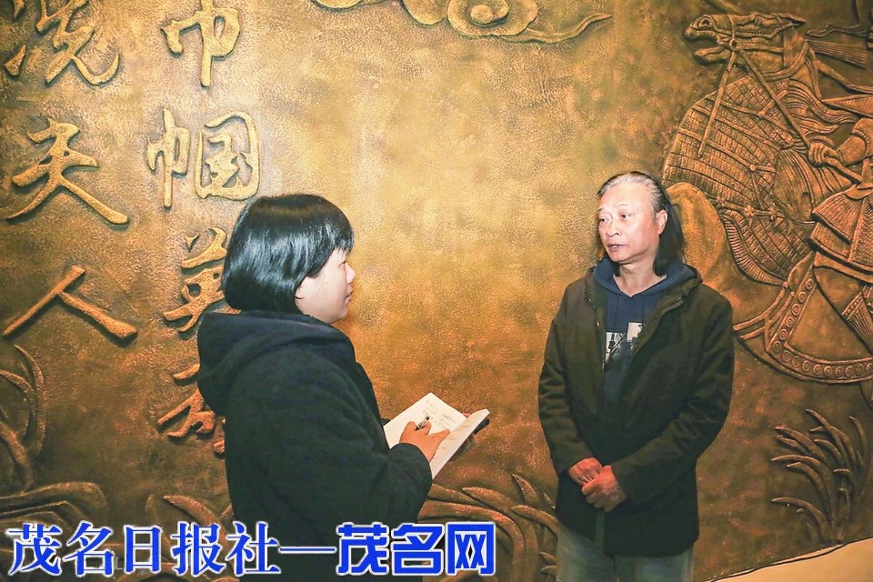 甘毅明接受记者采访。茂名日报社全媒体记者李颜东摄