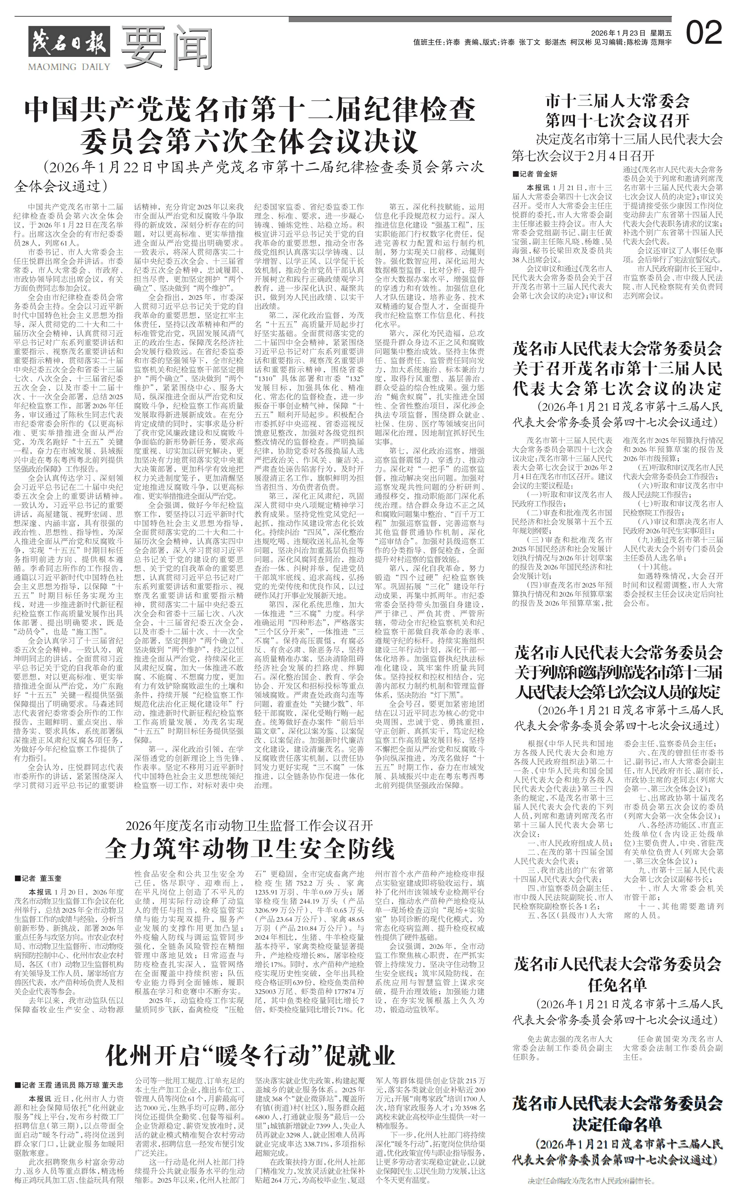 茂名市人民代表大会常务委员会关于召开茂名市第十三届人民代表大会第七次会议的决定