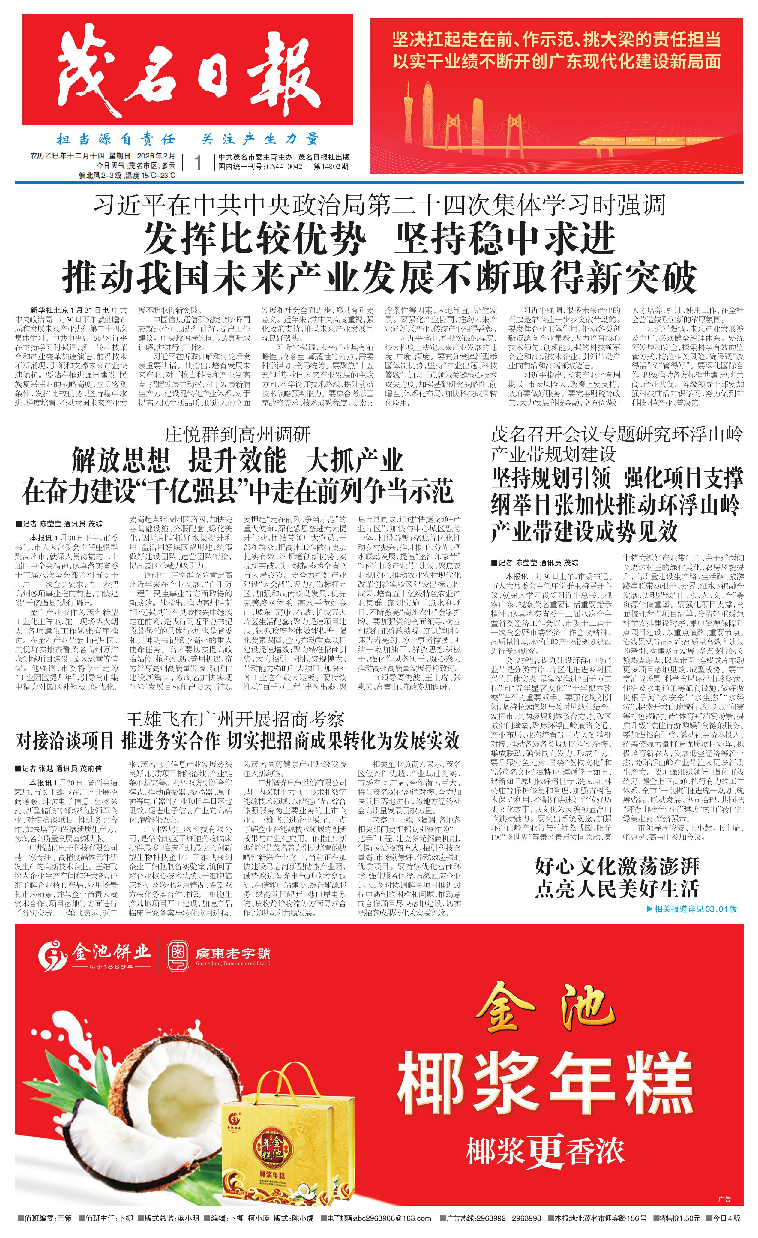 茂名召开会议专题研究环浮山岭产业带规划建设