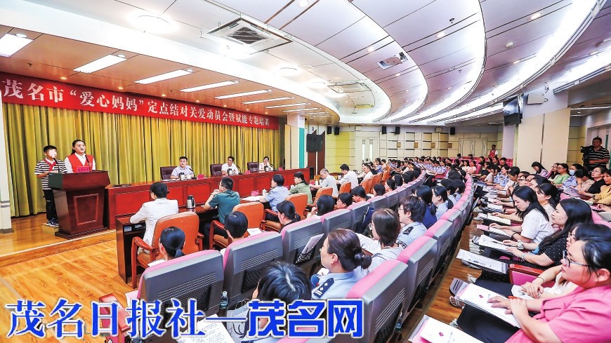2025年8月7日,召开茂名市“爱心妈妈”定点结对关爱动员会暨赋能专题培训。图为信宜市“爱心妈妈”和结对儿童在会上分享感人故事。