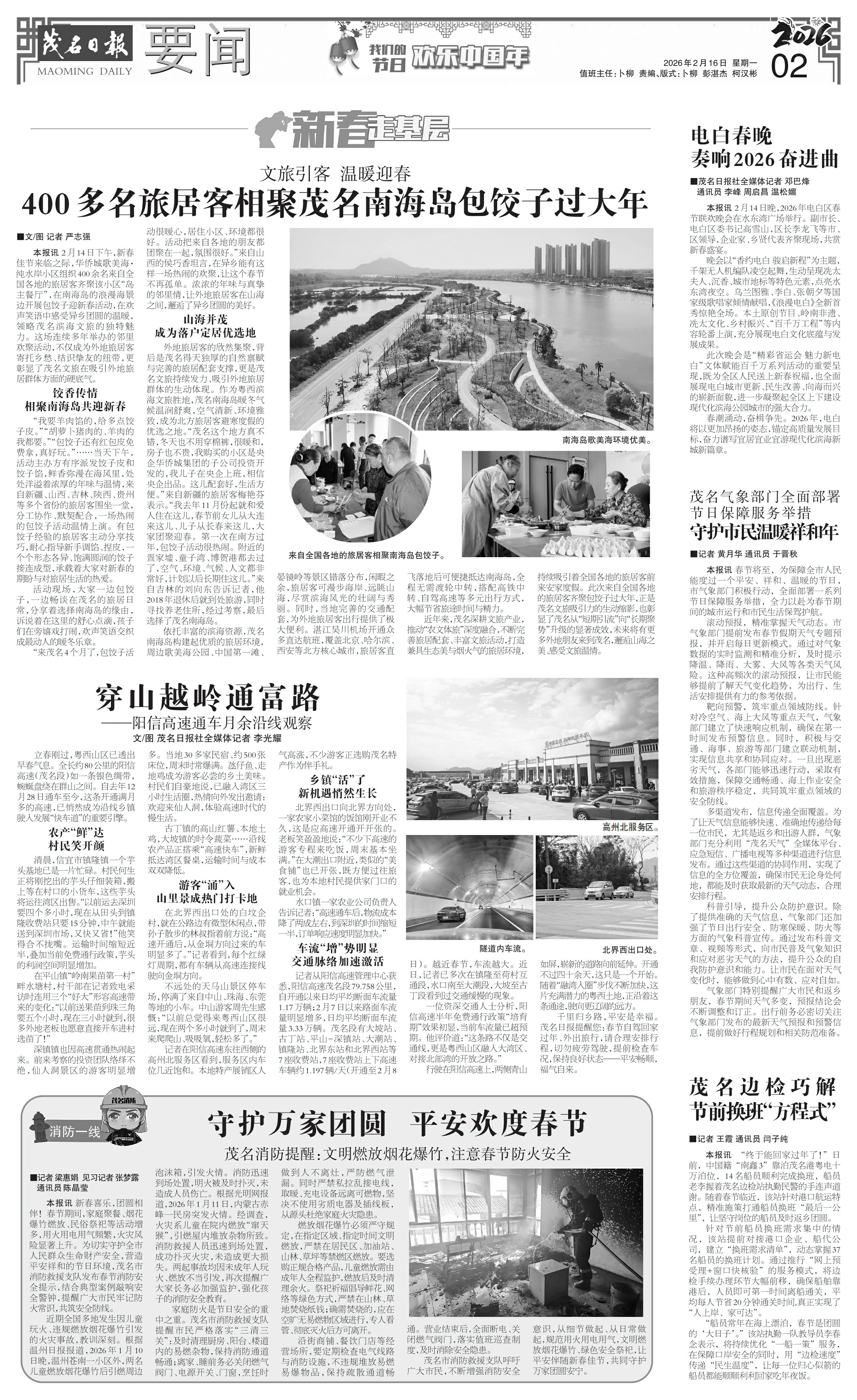 近年来,茂名深耕文旅产业,推动“农文体旅”深度融合,不断完善旅居配套、丰富文旅活动,打造兼具生态美与烟火气的旅居环境,持续吸引着全国各地的旅居客前来安家度假。此次来自全国各地的旅居客齐聚包饺子过大年,正是茂名文旅吸引力的生动缩影,也彰显了茂名从“短期引流”向“长期聚势”升级的显著成效,未来将有更多外地朋友来到茂名,邂逅山海之美、感受文旅温情。
