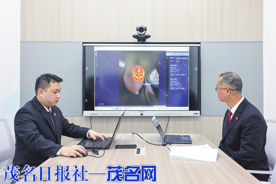 高州法院法官启用司法惠民服务中心网络开展“云上”调解。