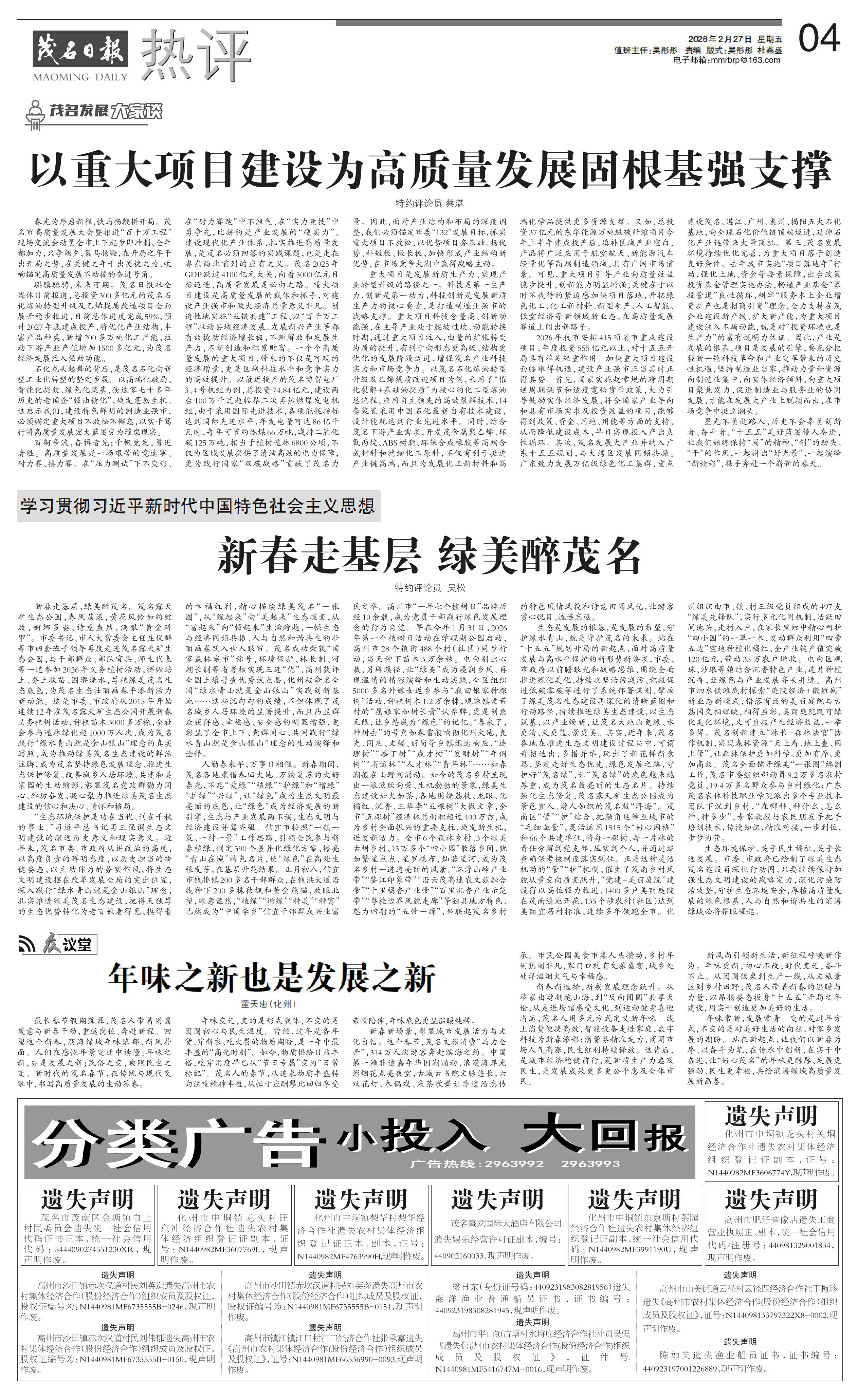 新春走基层 绿美醉茂名