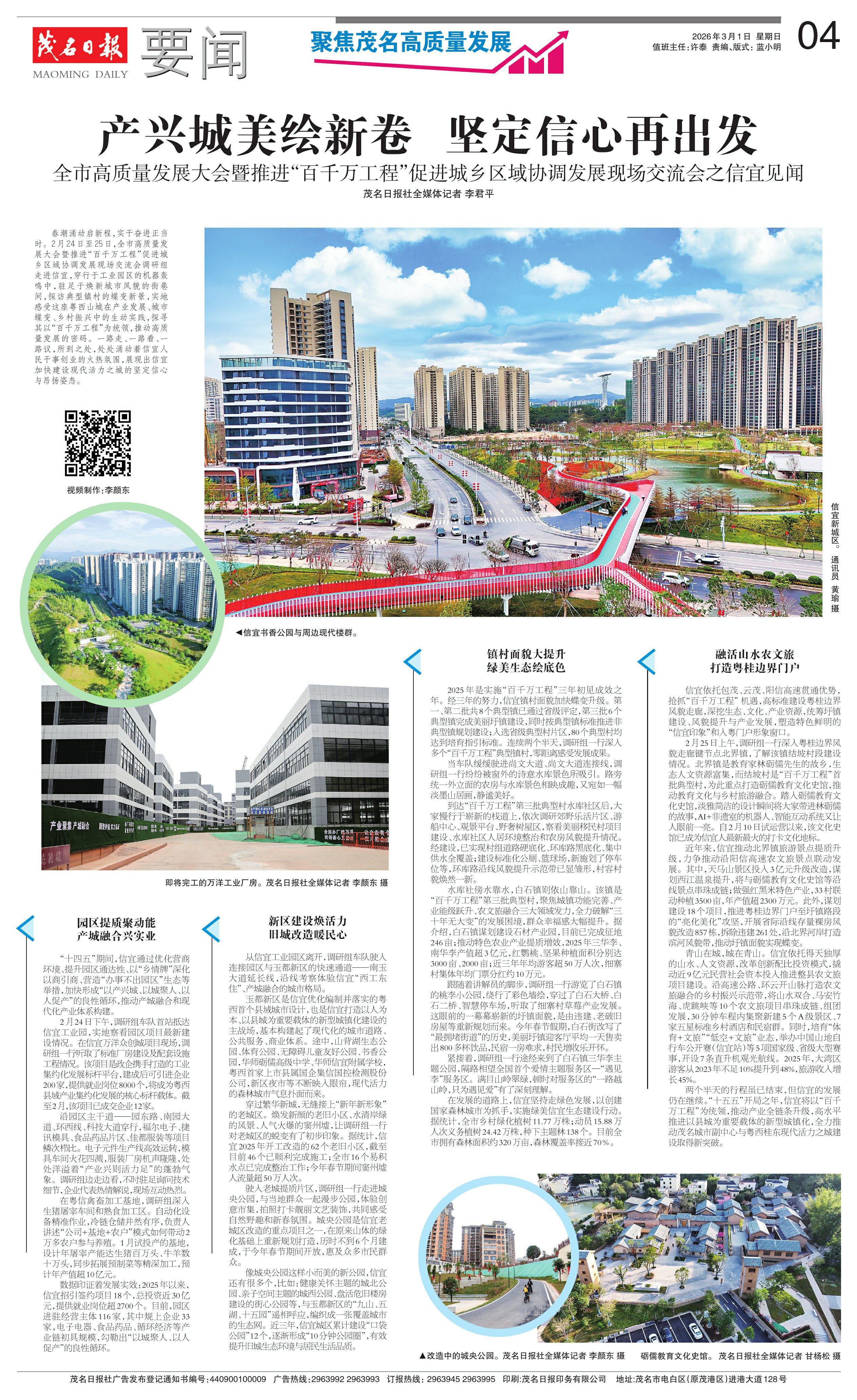 两个半天的行程虽已结束,但信宜的发展仍在继续。“十五五”开局之年,信宜将以“百千万工程”为统领,推动产业全链条升级,高水平推进以县城为重要载体的新型城镇化,全力推动茂名城市副中心与粤西桂东现代活力之城建设取得新突破。