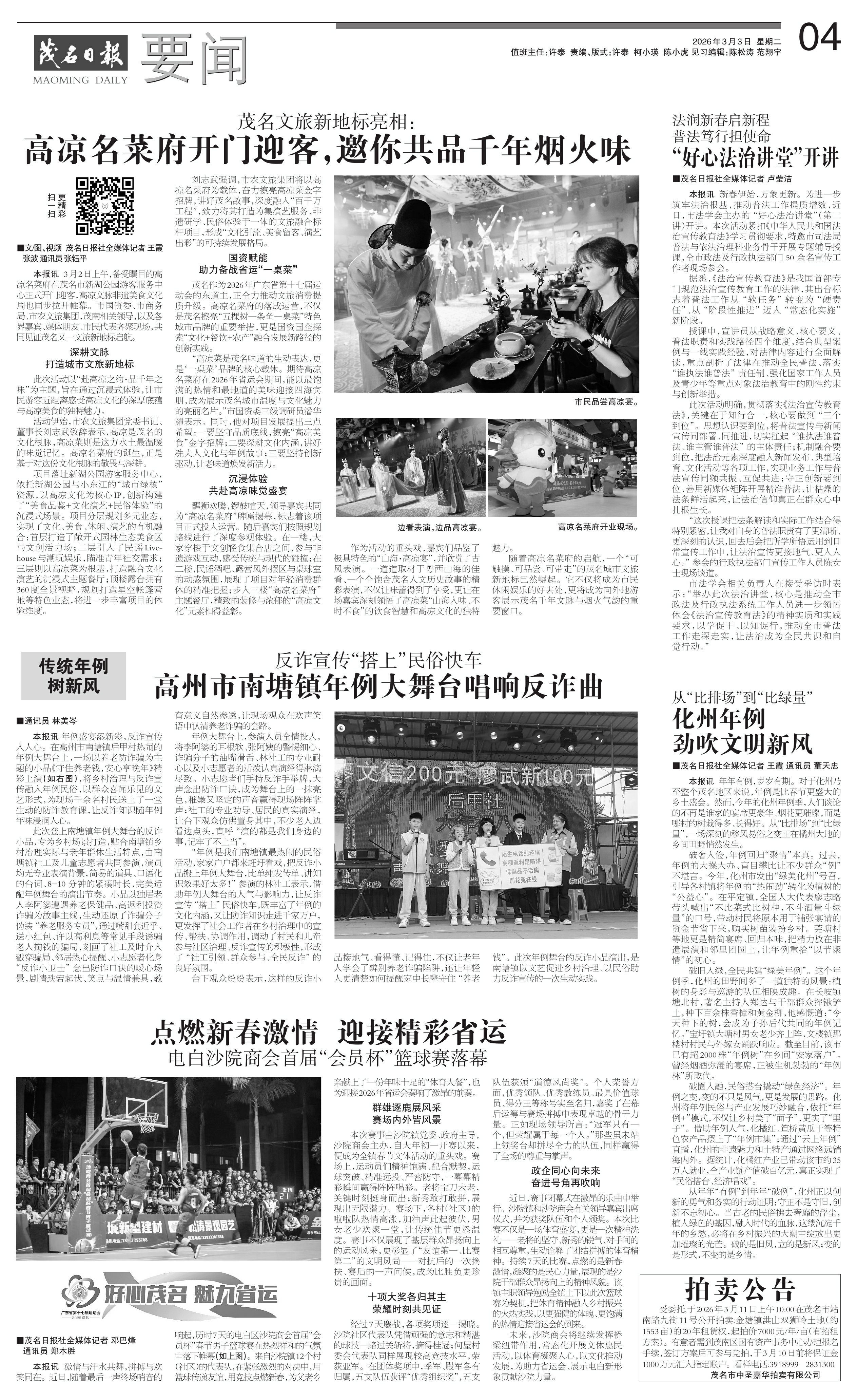 本报讯 年年有例,岁岁有期。对于化州乃至整个茂名地区来说,年例是比春节更盛大的乡土盛会。然而,今年的化州年例季,人们谈论的不再是谁家的宴席更豪华、烟花更璀璨,而是哪村的树栽得多、长得好。从“比排场”到“比绿量”,一场深刻的移风易俗之变正在橘州大地的乡间田野悄然发生。