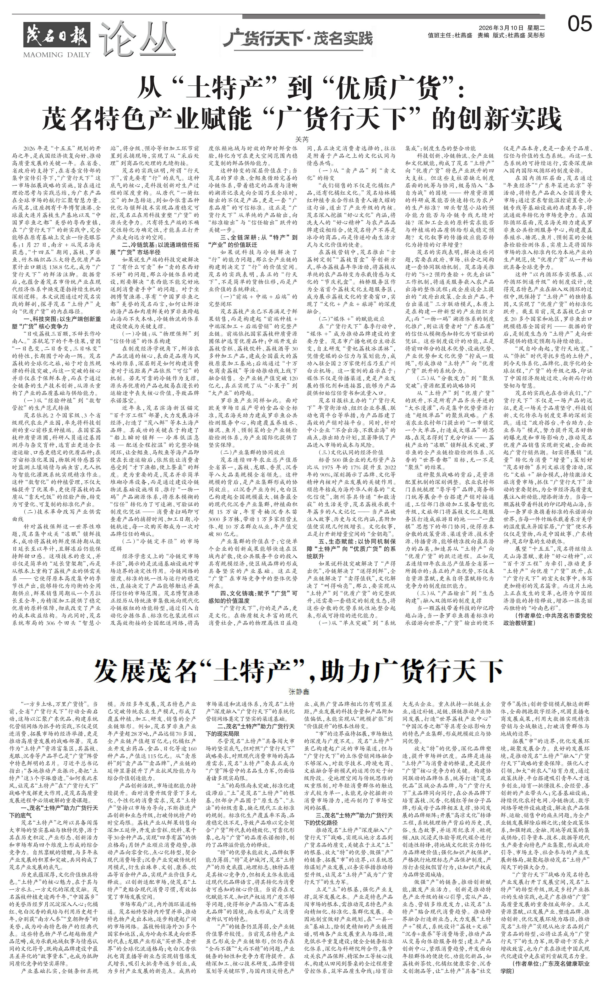 从“土特产”到“优质广货”:茂名特色产业赋能“广货行天下”的创新实践