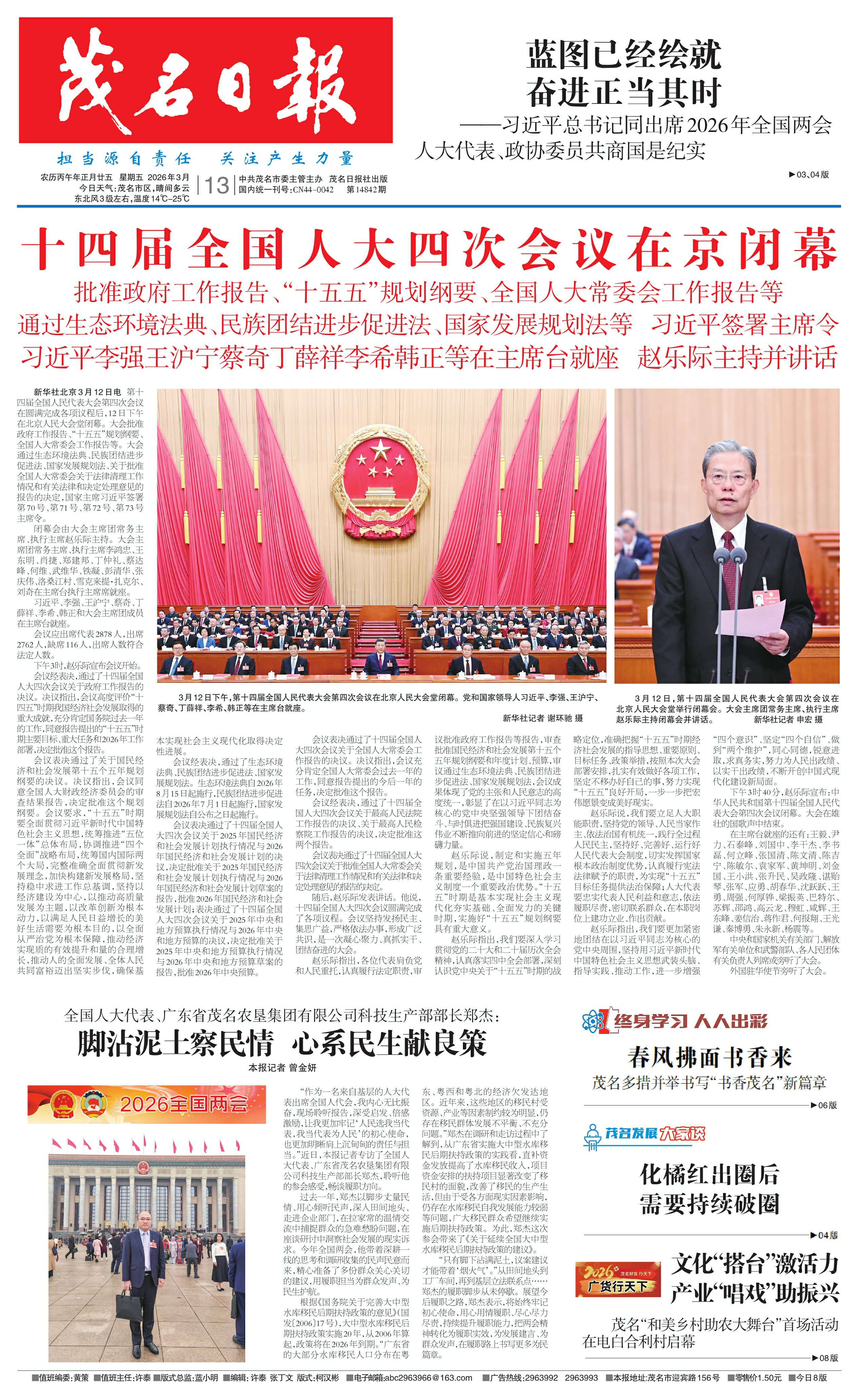 十四届全国人大四次会议在京闭幕