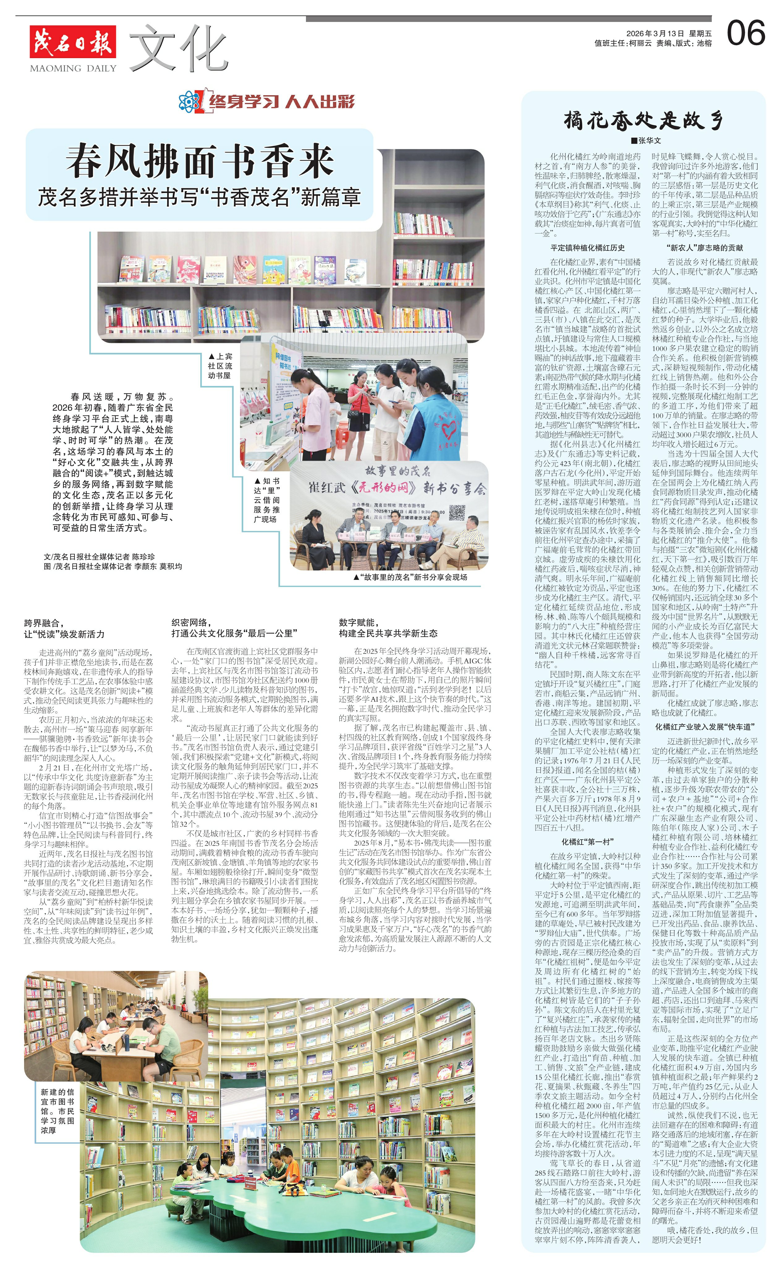 春风送暖,万物复苏。2026年初春,随着广东省全民终身学习平台正式上线,南粤大地掀起了“人人皆学、处处能学、时时可学”的热潮。在茂名,这场学习的春风与本土的“好心文化”交融共生,从跨界融合的“阅读+”模式,到触达城乡的服务网络,再到数字赋能的文化生态,茂名正以多元化的创新举措,让终身学习从理念转化为市民可感知、可参与、可受益的日常生活方式。