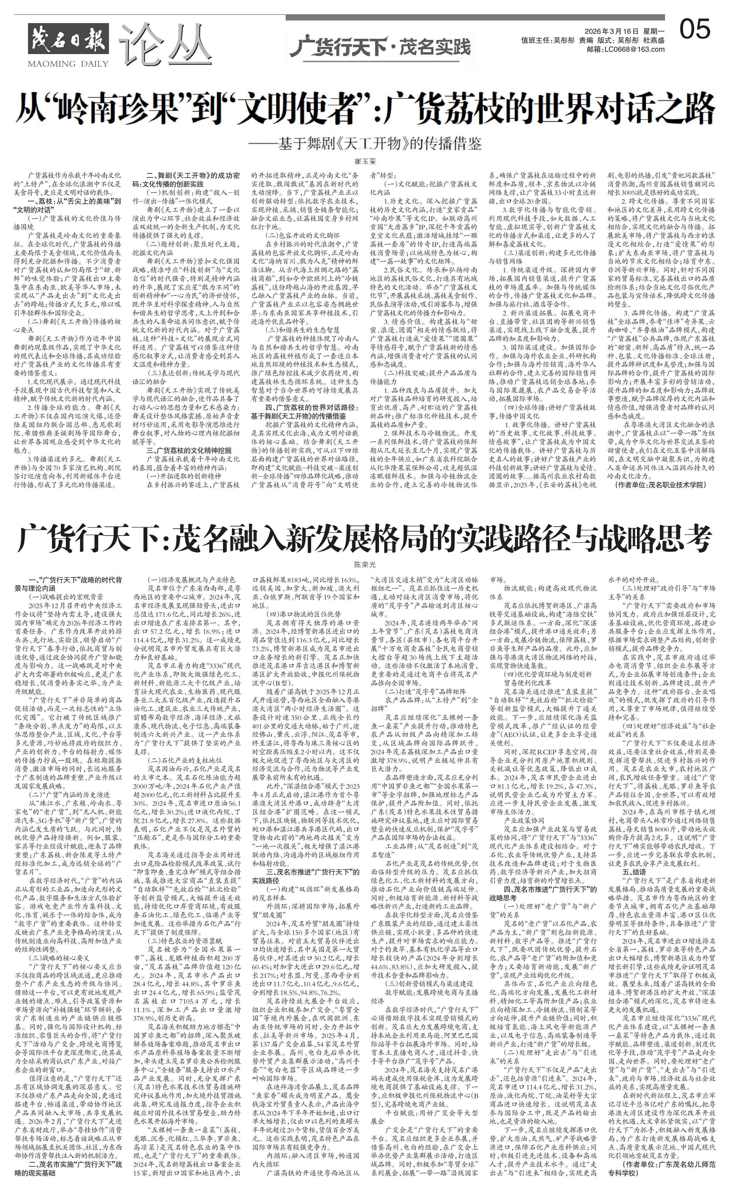 广货行天下:茂名融入新发展格局的实践路径与战略思考