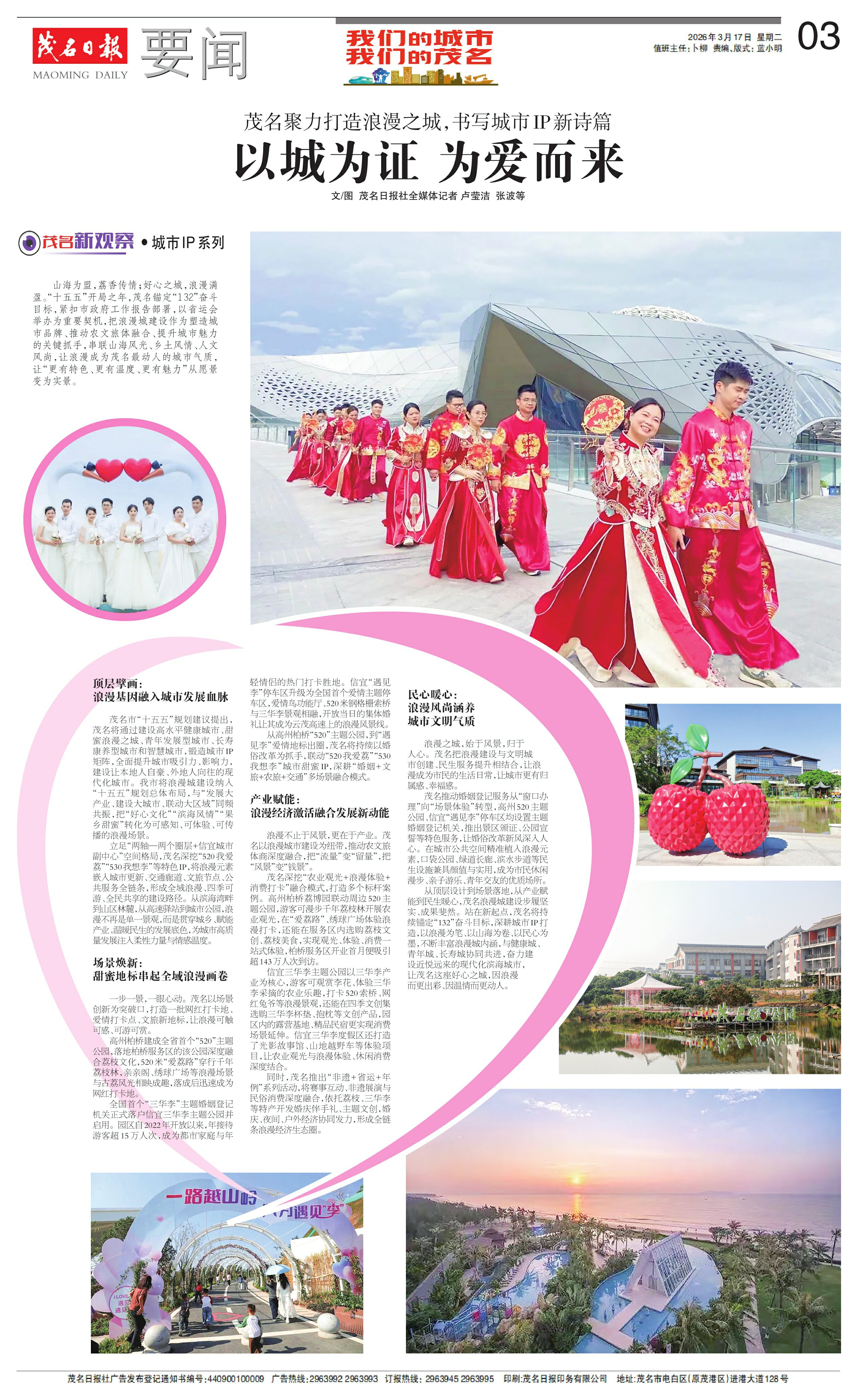 从高州柏桥“520”主题公园,到“遇见李”爱情地标出圈,茂名将持续以婚俗改革为抓手,联动“520我爱荔”“530我想李”城市甜蜜IP,深耕“婚姻+文旅+农旅+交通”多场景融合模式。