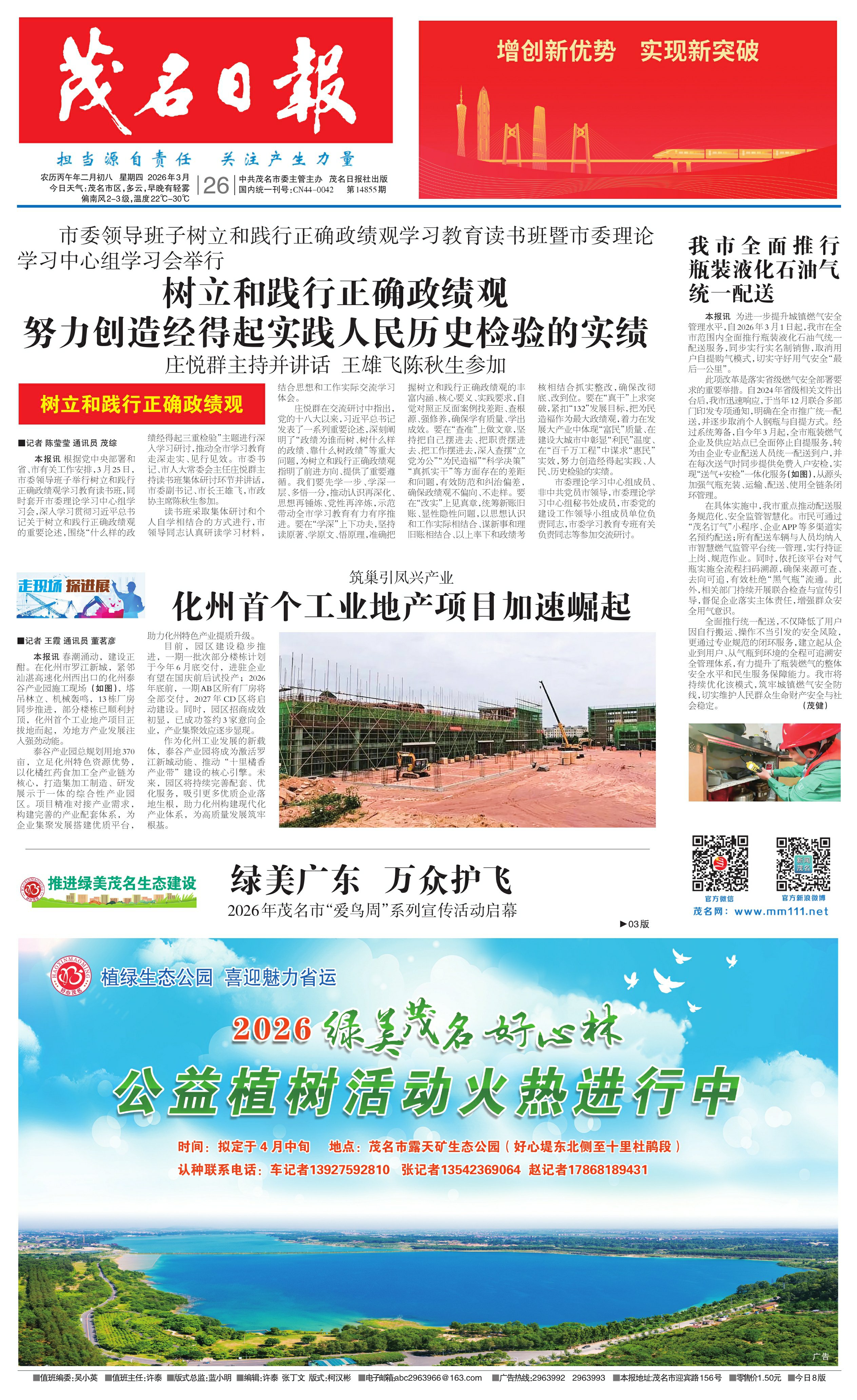 本报讯 根据党中央部署和省、市有关工作安排,3月25日,市委领导班子举行树立和践行正确政绩观学习教育读书班,同时套开市委理论学习中心组学习会,深入学习贯彻习近平总书记关于树立和践行正确政绩观的重要论述,围绕“什么样的政绩经得起三重检验”主题进行深入学习研讨,推动全市学习教育走深走实、见行见效。市委书记、市人大常委会主任庄悦群主持读书班集体研讨环节并讲话,市委副书记、市长王雄飞,市政协主席陈秋生参加。