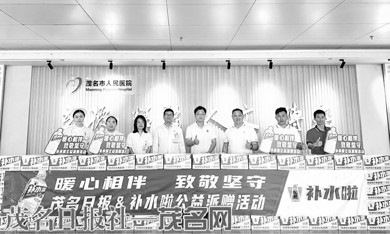 本报讯3月25日,茂名日报社联合东鹏饮料(集团)股份有限公司在茂名市人民医院开展“暖心相伴致敬坚守”公益派赠活动,向医院全体一线医护人员捐赠250件“补水啦”电解质饮料,以实际行动致敬医者仁心,为高强度工作的医护人员送去切实关怀。