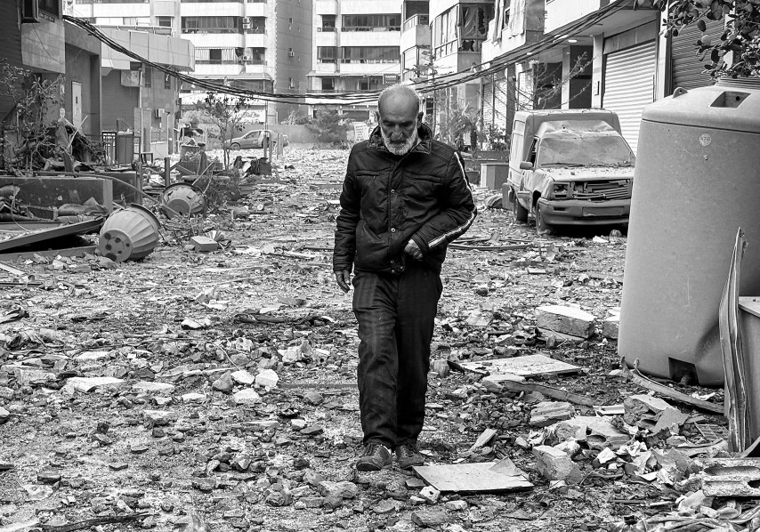 在黎巴嫩贝鲁特南郊,一名男子走在被以色列袭击后的街道上。新华社发(比拉尔·贾维希 摄)