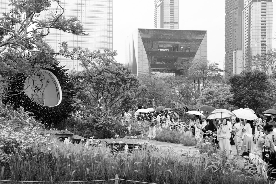 游客在深圳笔架山体育公园参观2026粤港澳大湾区花展。花展期间,公园联动商圈,为游客提供赏花、购物、住宿一站式体验(3月27日摄)。 近年来,深圳以“公园+”丰富市民游园体验,创新推出深圳湾公园“公园BOX艺术轻空间”,叠加公园书吧、无人机智能配送等便民配套服务。在依条例规范市场化运营的基础上,通过联动周边商圈资源,让生态空间更好融入城市生活,满足市民多元化、高品质的游园需求。 新华社记者梁旭摄