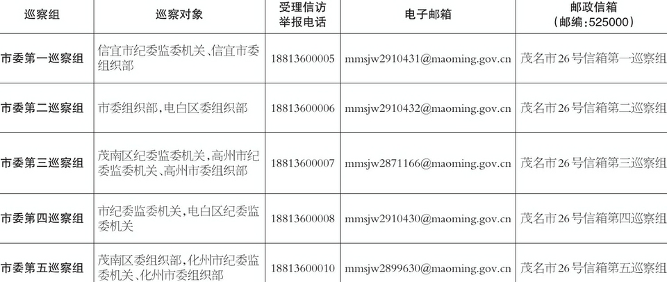 巡察期间,各巡察组设立专门值班电话、邮箱和信箱,具体如下: