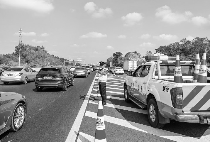 茂湛、包茂高速路政人员提前驻点,全力以赴应对道路车流高峰时段交通疏导工作。