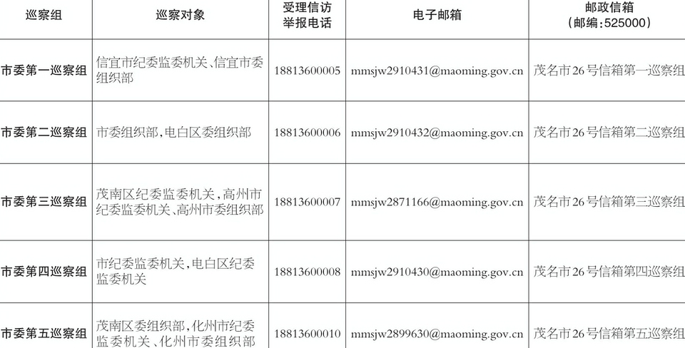 巡察期间,各巡察组设立专门值班电话、邮箱和信箱,具体如下: