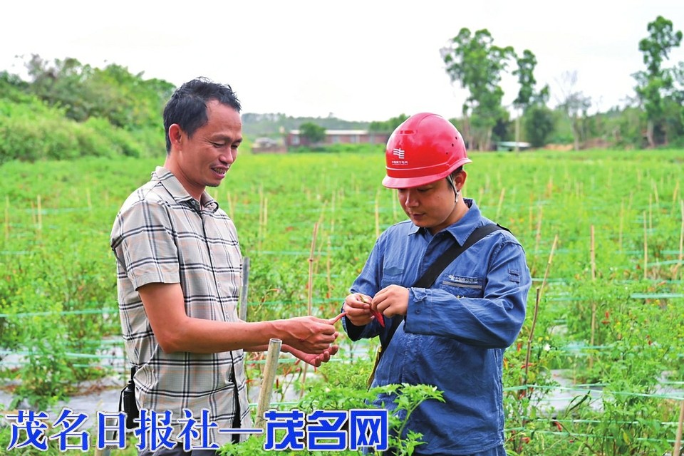 茂名化州供电局杨梅供电所人员下沉种植一线,与辣椒种植农户贴心沟通,保障农耕安全用电。 通讯员 邱志涌 摄