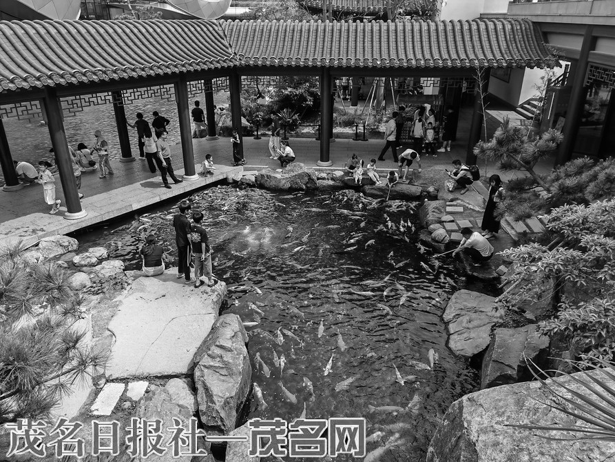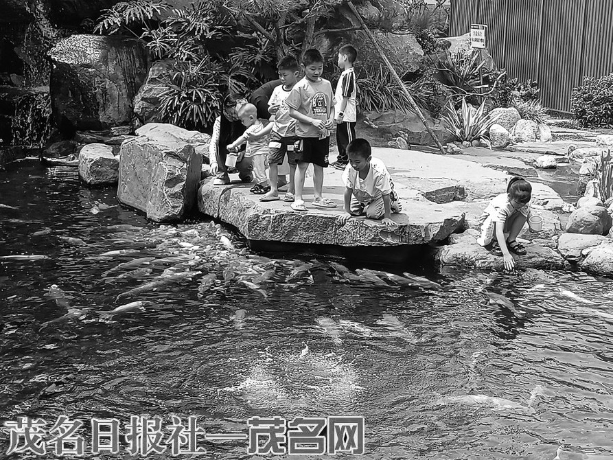 小朋友们在柏桥服务区观赏锦鲤。记者 周燕红 摄