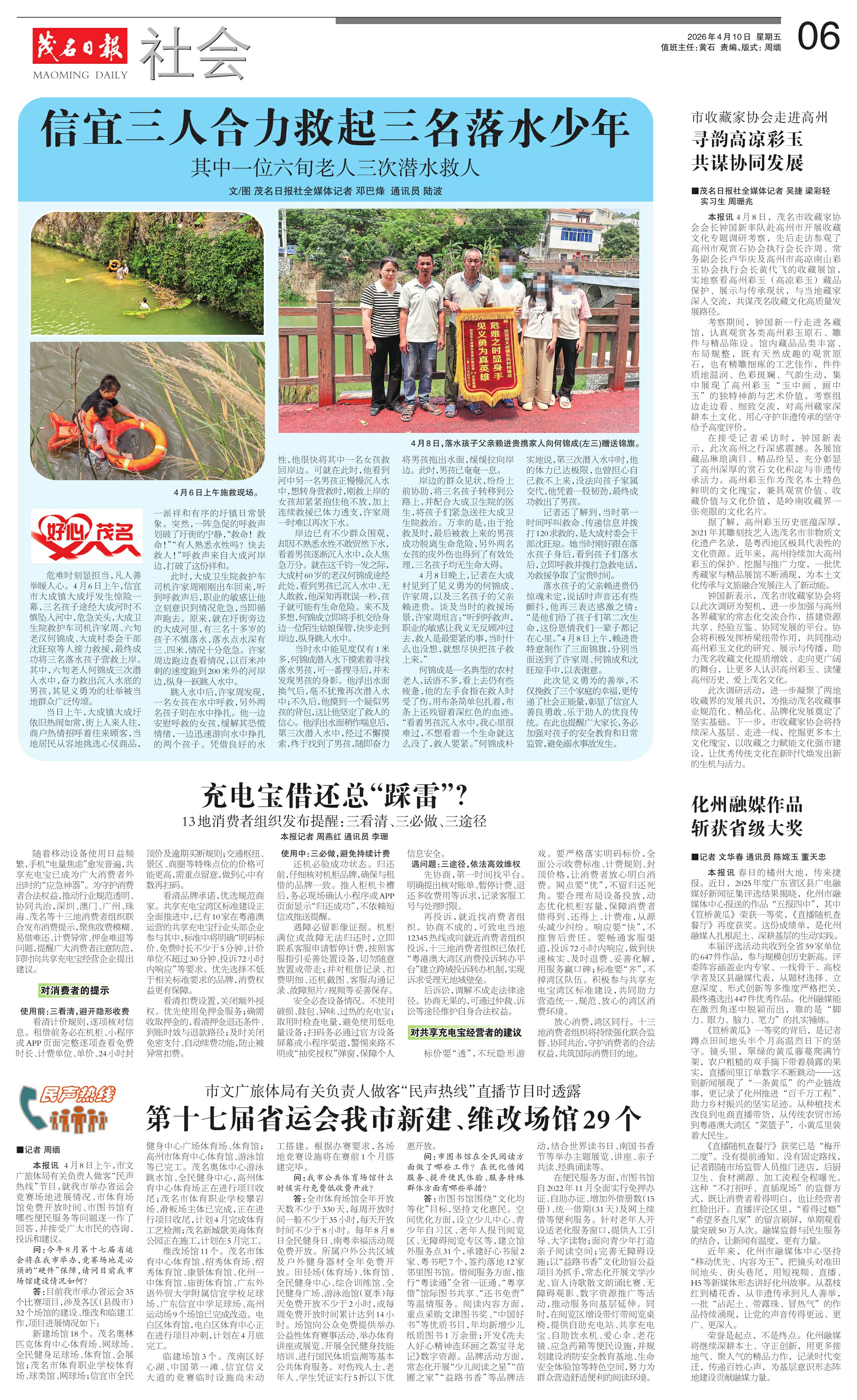 信宜三人合力救起三名落水少年