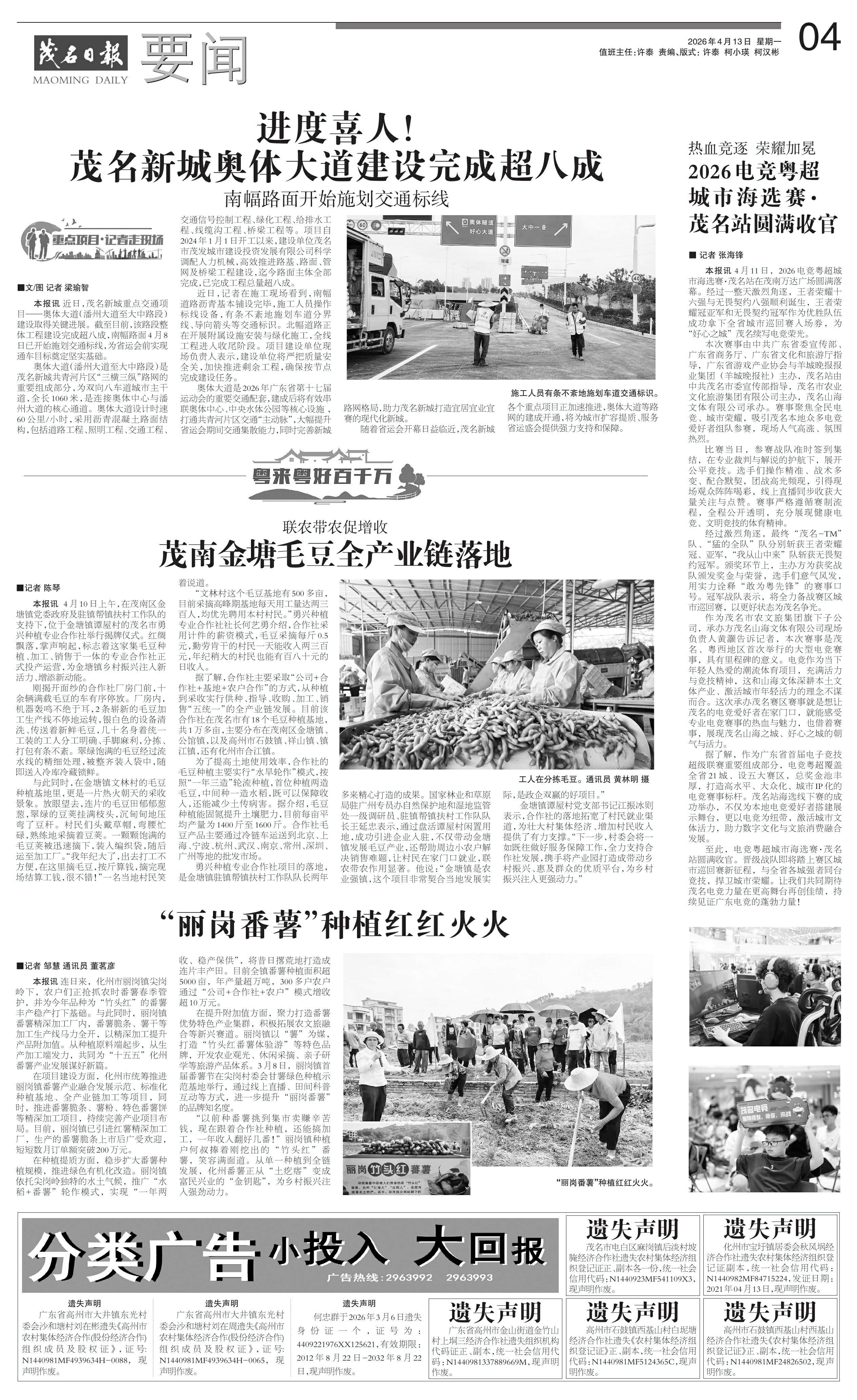 进度喜人!茂名新城奥体大道建设完成超八成