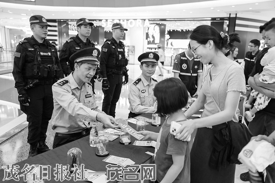 本报讯 4月17日晚,茂名市公安局茂南分局统筹西粤派出所、情报指挥中心、刑侦大队、禁毒大队、环食药侦查大队、交管大队、巡特警大队等多警种精锐警力,走进茂名市东荟城商圈开展“平安守护进商圈·反诈禁毒保民生”联合宣传活动,以精准化、多元化宣传服务将安全知识送到群众身边,全力筑牢辖区安全屏障,守护一方平安稳定。