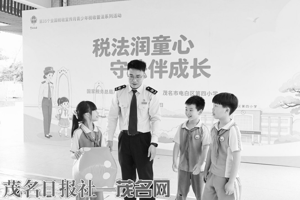 本报讯 4月22日,在第35个全国税收宣传月之际,国家税务总局茂名市电白区税务局“青年税收普法服务队”走进电白区第四小学,携手校方联合举办“税法润童心守法伴成长”青少年税收普法系列活动,在校园播散税法种子,让法治理念融入青少年成长之路。