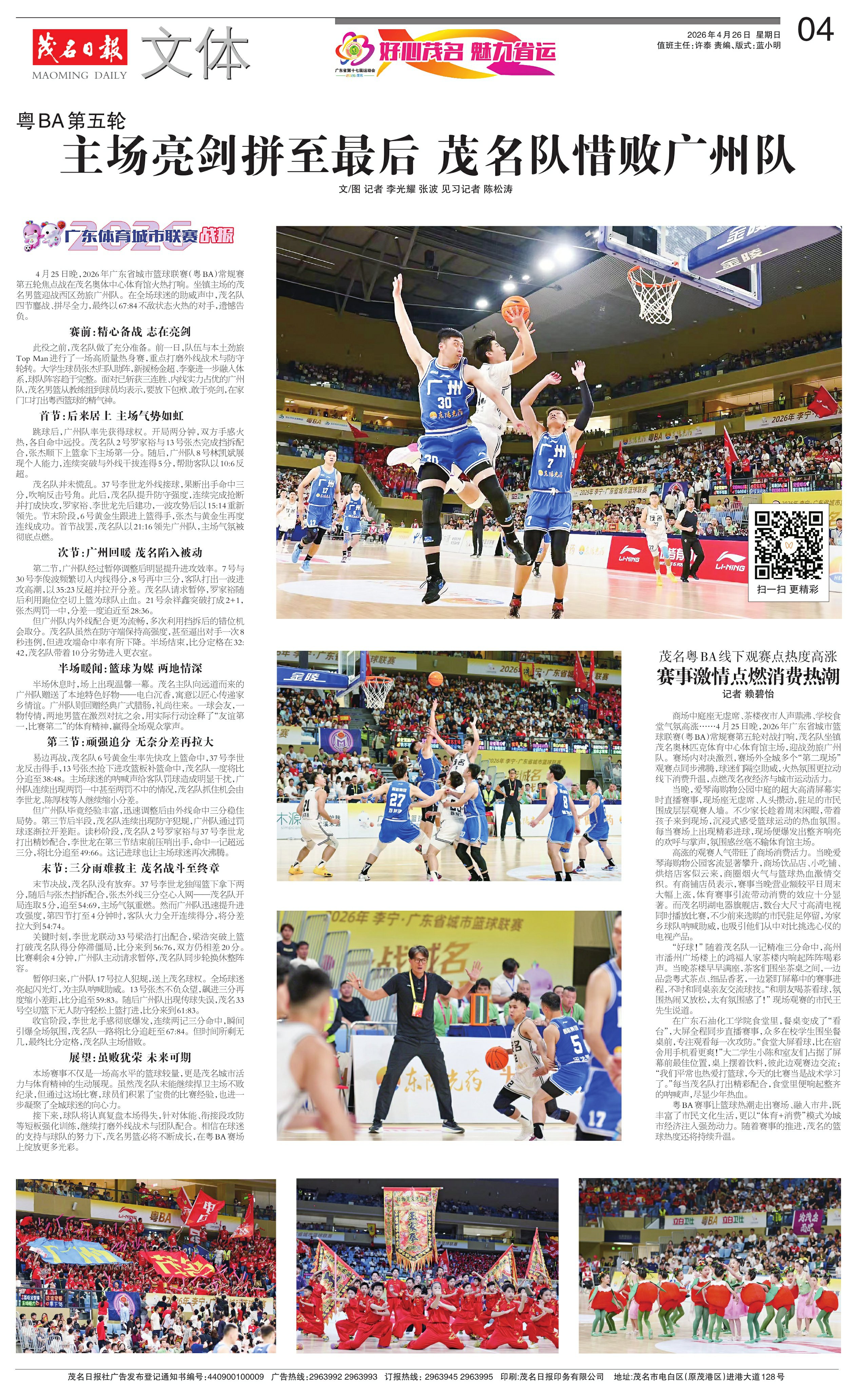 主场亮剑拼至最后 茂名队惜败广州队