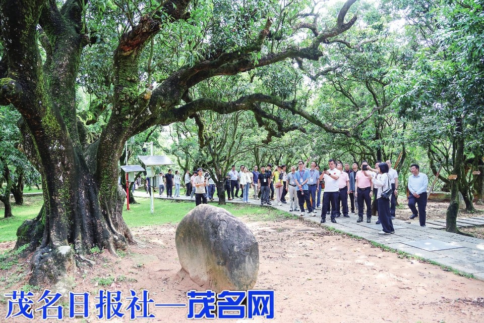 当天上午,高州线考察团首站来到“中国荔枝第一镇”根子镇的贡园。这里被誉为“活的荔枝博物馆”,园内古树虬劲苍郁,百年古荔连片生长,见证着荔乡的岁月变迁。考察代表缓步穿行林间,聆听古树故事与产业规划介绍,深入了解荔枝管护、古树认购、定制农业等新业态发展,切身感受古荔的蓬勃生机。“通过品种改良和技术提升,今年早熟荔枝、白糖罂、妃子笑丰收在望,品质优良。我已经和多家采购商达成了订单,期待互利共赢。”荔枝种植大户何建和开心道。